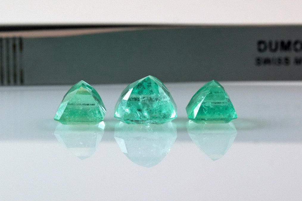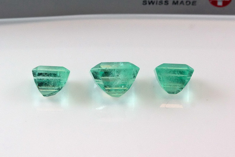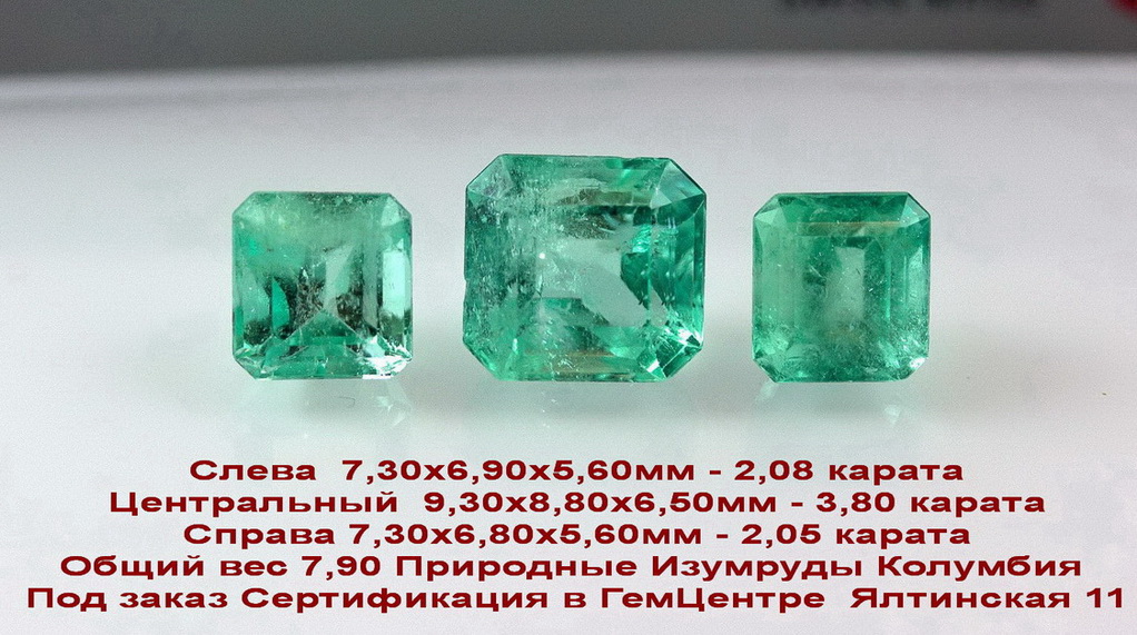 Изумруды 7,90ct Колумбия Природные РАРИТЕТ комплект 3 камня Общий вес 7,90 Природные Изумруды Колумбия Сертификация в ГемЦентре Ялтинская 11 Слева 7,30х6,90х5,60мм - 2,08 карата Центральный 9,30х8,80х6,50мм - 3,80 карата Справа 7,30х6,80х5,60мм - 2,05 карата