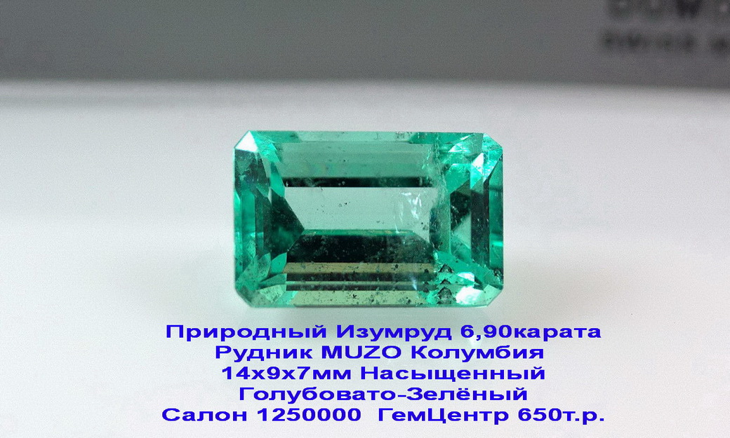 Ясность: Тип 2 Тон: средний Насыщенность Средняя Цвет: Голубовато-Зеленый Блеск: отлично ,Яркость: отлично Место добычи : Колумбия - Музо Цена в Салоне от 1,6млн Под заказ ГЕМЦЕНТР 850 ВВЕРХУ камень отдельно ..