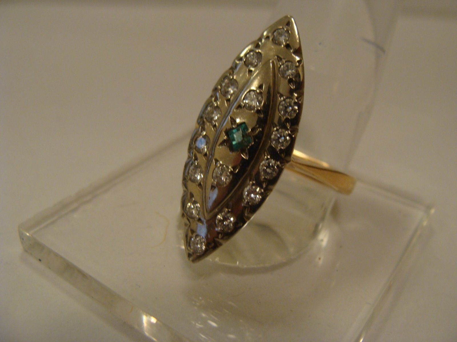 По середине изумруд и бриллианты , правда старой огранки ..